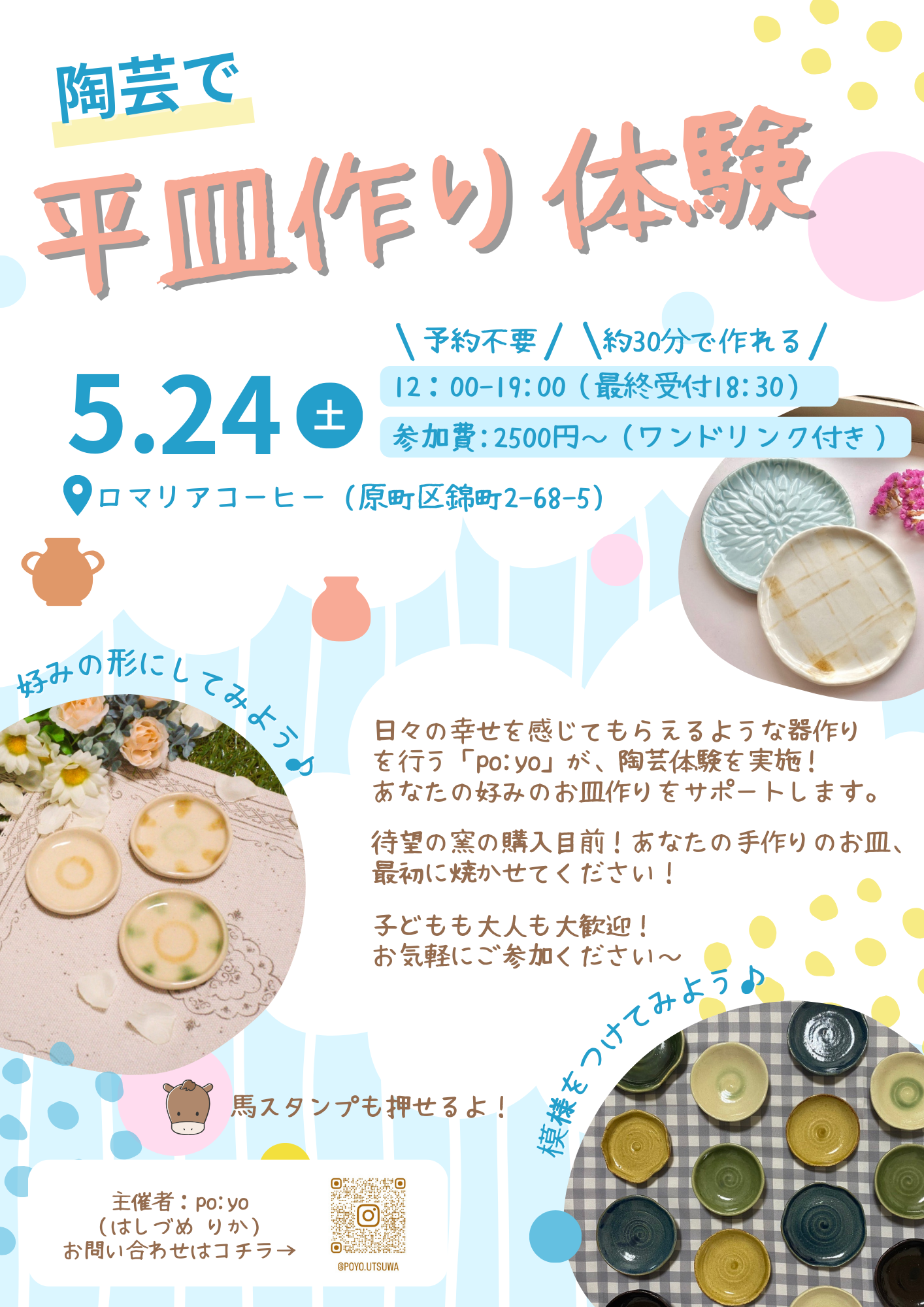 po:yoお気に入りのカフェにて、陶芸体験イベントを実施させて頂けることになりました。